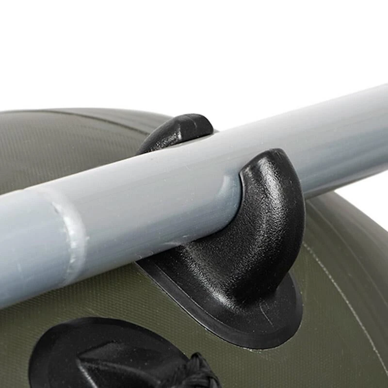 De Fox 215 Green Boat Slat Floor is perfcet voor het droppen van rigs, voeren en drillen. De is licht en gemakkelijk te transporteren. Hij is gemaakt van 0,7mm dik, sterk materiaal in de unieke groene fox kleur. De boot heeft 3 drie luchtkamers met een diameter van 42cm en een overdrukventiel voor extra veiligheid, en een vergrote boeghoek voor het gemakkelijker navigeren in de golven. Aan de achterzijde voorzien van een zwarte multiplex spiegel met versterkte kunstof motor bracket. De boot wordt geleverd met aluminium peddels.Â