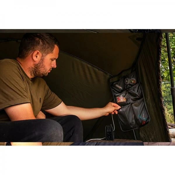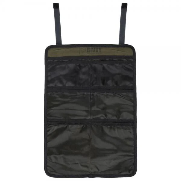 Deze Handige Fox Bivvy Organiser is gemaakt van duurzaam 400D materiaal. Hij is te gebruiken voor divers gebruik , Zoals klein materiaal in een bivvy of zoals het bewaren van kruiden en sauzen in een kooktent. De organiser is voorzien van velco strips voor bevestiging op plek naar keuze, en heeft mesh vakken, zodat je de inhoud goed kunt zien. Hij heeft 2 kleine, 4 medium en 2 grote mesh vakken. De organiser is makkelijk compact op te rollen voor gemakkelijk transport en opslag. Afmeting: 47cm x 32cm.