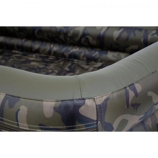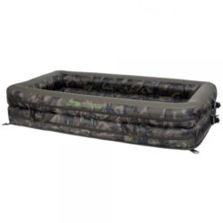 Opblaasbaar onthaakmat ontwerp voor de ultieme bescherming van de vis Twee verwisselbare heavy duty luchtkamers In tegenstelling tot andere opblaasbare onthaakmatten zijn de ventielen aan het einde van de mat gepositioneerd, voor gemakkelijk oprollen en lucht eruit drukken Kan op de traditionele manier met opstaande randen worden gebruikt, maar ook ondersteboven Gebruik ondersteboven is ideaal voor zeer grote vissen, omdat je vanwege het materiaal je handen beter onder de vis krijgt en deze dus veiliger kunt hanteren Bij gebruik ondersteboven kan de cover simpel worden verwijderd, op de nieuwe plaats gelegd en met klittenband vastgezet Heavy duty PVC bescherming van bodem en luchtkamers 210D polyester materiaal met uniek Fox Camo motief Uitneembare 50mm high density foam bodem Bevestigingspunten voor haringen Veiligheidsflap met elastieken en klittenband Polyester handgrepen Verkrijgbaar in 2 formaten: Standaard (binnenmaat 100 x 50cm) en XL (binnenmaat 125 x 70cm) Inclusief draagtas en voetpomp.