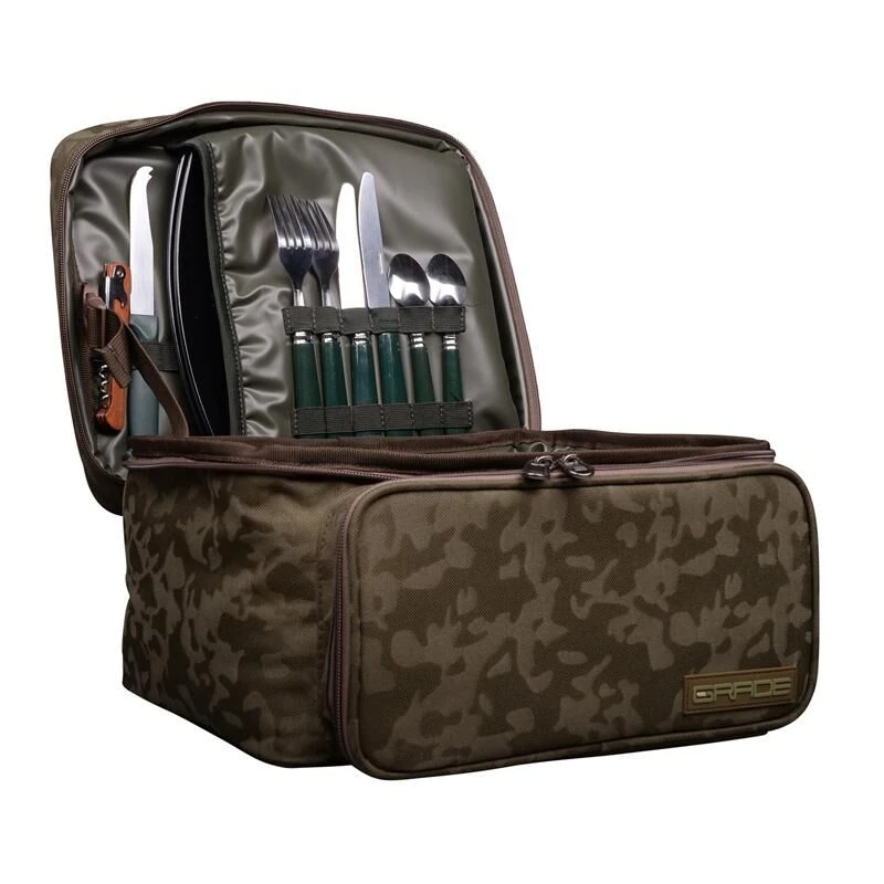 Het Grade ontwerp team heeft zich tot doel gesteld om een kooktas te ontwikkelen die ondanks zijn compacte afmetingen toch voldoende ruimte biedt aan alle kookspullen die je nodig hebt tijdens een korte, of langere sessie. Dankzij het modulaire design valt deze perfect te combineren met diverse Grade tassen. Tevens is de cooking bag volledig voorzien van borden, bestek, mokken en zelfs een windscherm om direct vanuit de tas te kunnen koken.