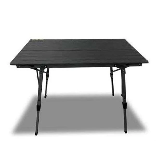 Een zeer fraai, lichtgewicht tafel voor alle ondergronden. Vervaardigd uit zwart geanodiseerd aluminium, en voorzien van 4 verstelbare poten om op iedere ondergrond recht te zetten. Extra scharnieren zorgen voor meer stabiliteit. Het verwijderbare tafelblad maak je los en rol je op, de poten klappen in voor een zeer compact vervoer in de bijgeleverde draagtas.