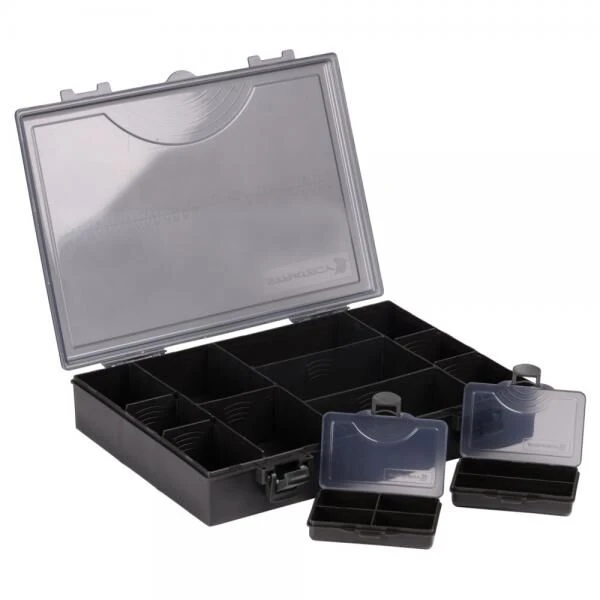 Deze klassieke Strategy Tackle Box Medium is ideaal voor het opbergen van al je end tackle. De opbergdoos wordt geleverd met 2 kleine binnendozen. De box is voorzien van een doorschijnende deksel en heeft robuuste sluitings-clips. afmeting: 345mm x 235mmÂ